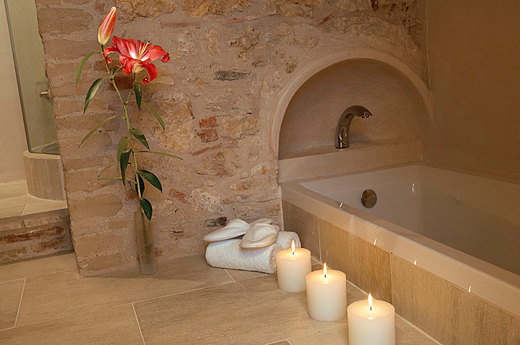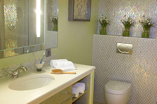 Los baños de las habitaciones tienen su propia personalidad, decorados con piedras cristal de murano simulando escamas marinas que otorgan un aire distinguido.